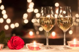 Velkomstbobler med oliven samt saltede mandler Vælg 2 foretter, 2 hovedretter samt én dessert Rødvin og hvidvin ad libitum under maden samt et glas dessertvin Kaffe og the Avec